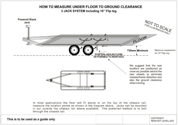 When measuring the underfloor the ground clearance it is advised to measure the selected location positions as shown in the diagram below. These location positions are important as they will provide the most travel clearance and departure clearance when in transit.