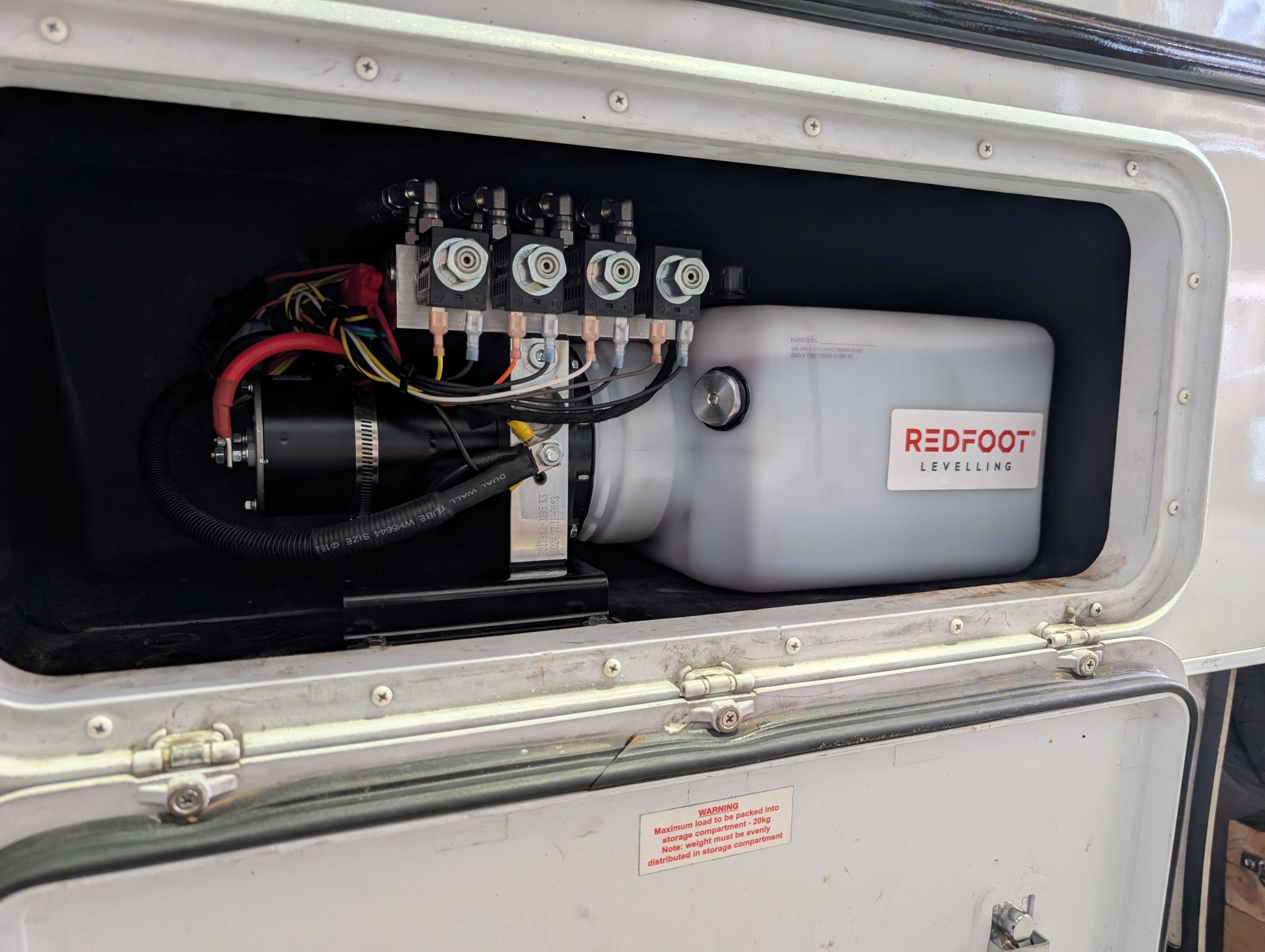 It is no wonder the Redfoot Fiat Ducato EQ Smart Level System has quickly become the number one choice for Fiat Ducato owners. Utilizing either two or four two-stage and two-way hydraulic cylinders, the Redfoot Fiat Ducato Levelling system can extend and retract the legs during the levelling sequence. The automatic, one touch operation levels a Fiat Ducato motorhome in less than two minutes, operating each leg independently in a sequential process. The Auto-levelling tolerance measures 0.5 degrees over 1m, making finding level and experience easily achieved in the shortest time possible.