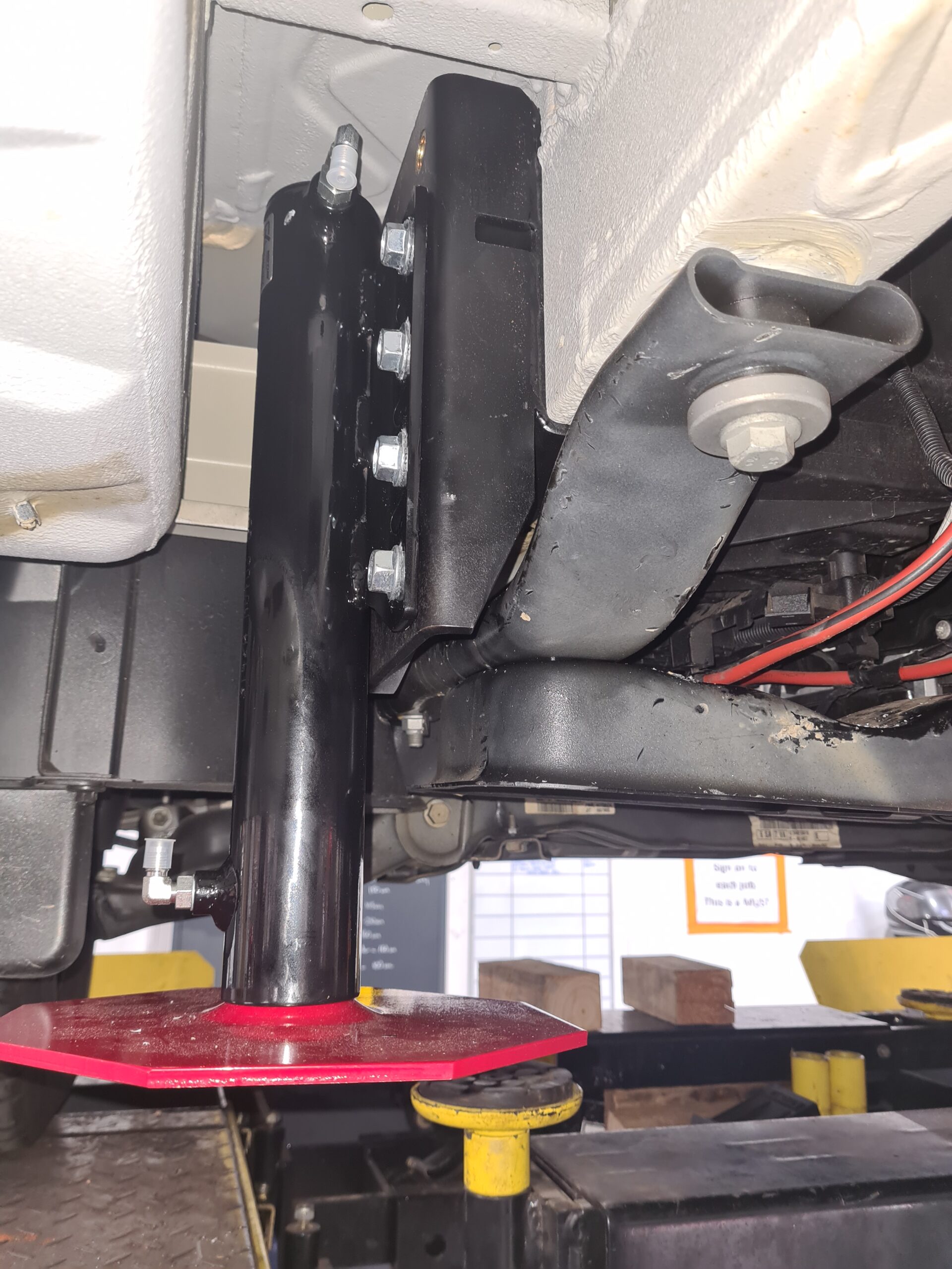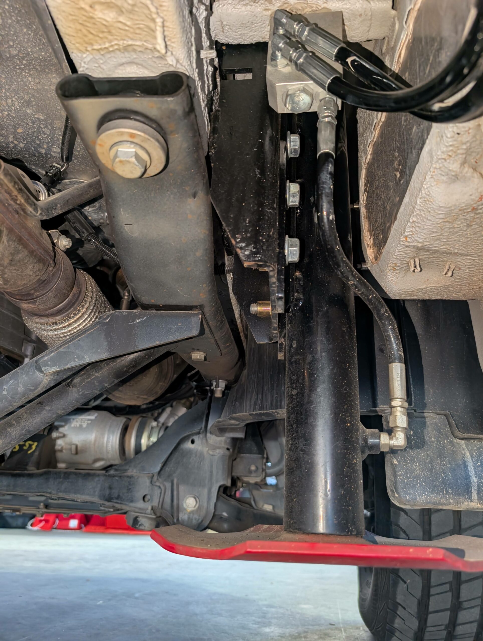 1. Custom brackets that are designed specifically to facilitate the easy attachment of the hydraulic cylinders to the Mercedes Sprinter chassis. No welding required!