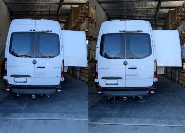 The Mercedes Benz Sprinter ‘EQ Smart Level’ System is engineered to be lightweight without sacrificing durability, ensuring minimal impact on your vehicle’s overall weight while providing robust support.